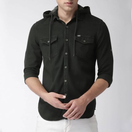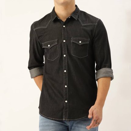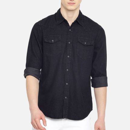 Men Black Slim Fit Solid Denim Casual Shirt
