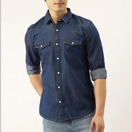Navy Blue Slim Fit Casual Denim Shirt