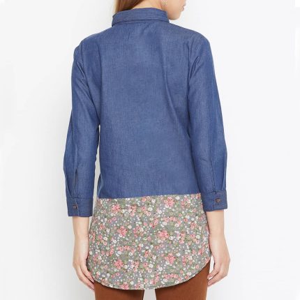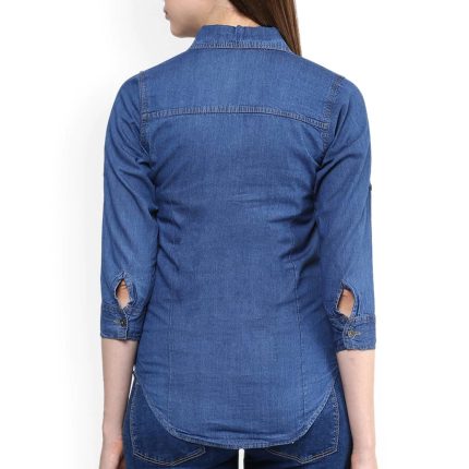 Women Blue Faded Denim Shirt