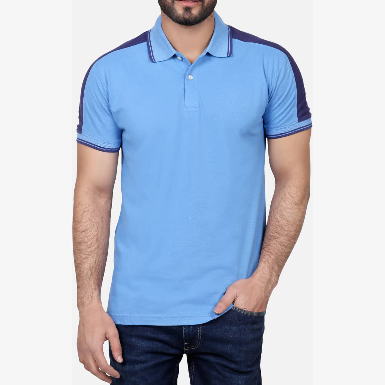 Classic polo design meets modern day function with this Cut and sew shoulder pannel having contrast pipping at cuff and collar rib along with embroidery on chest